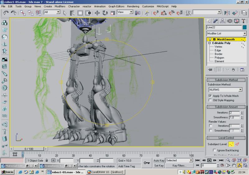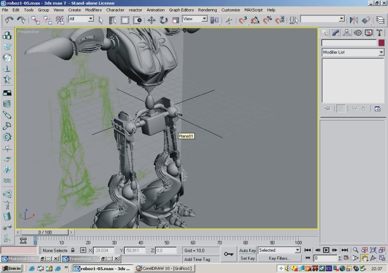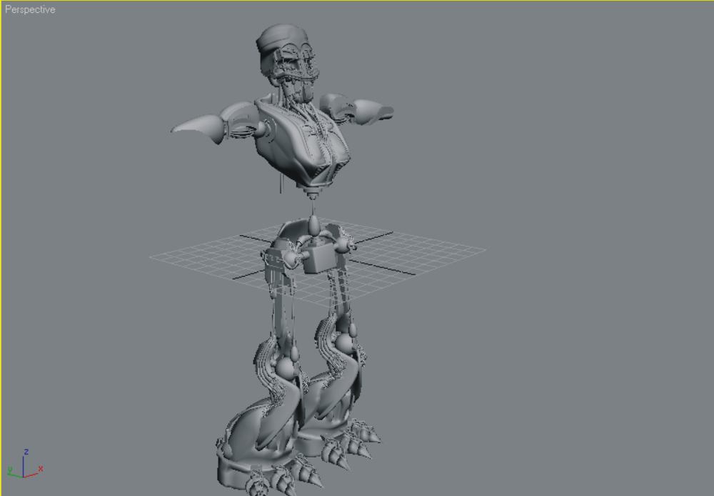 Que hay. Pues estoy modelando una especie de robot, lo acabo de empezar, así que, todavía le queda mucho. La idea es que no sea un robot totalmente mecánico, sino que sea más una criatura extraña.