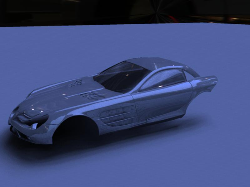 Bueno, el primer wip que pongo por aquí, es de un Mercedes SLR, lo estoy haciendo en polígonos, la textura por ahora es de referencia más para marcar la continuidad de los brillos que para final.