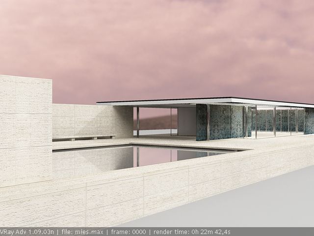Bueno chicos, ante todo un saludo, no quiero ofender a nadie, pero este tema se trato en un foro espacializado de Vray (creo que todos lo conocéis) hace ya cerca de tres años, que fuerte como pasa el tiempo, os adjunto el enlace para que le echéis un vistazo. http://www.chaosgroup.com/forum/phpb...t=mies&start=0. Un saludo y ánimo, pero un poco de variedad. Con la cantidad de edificios.