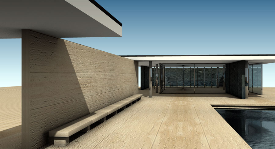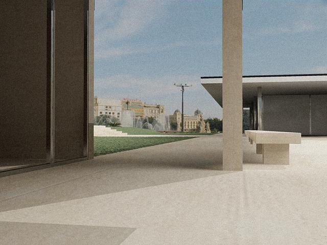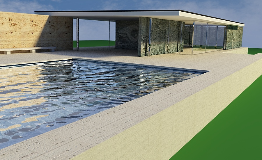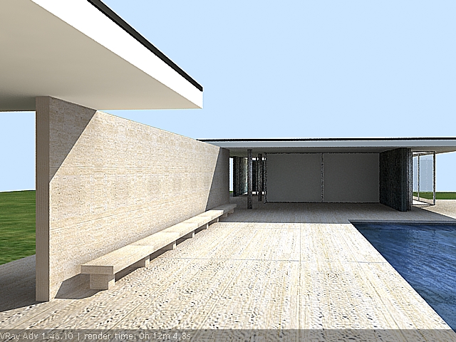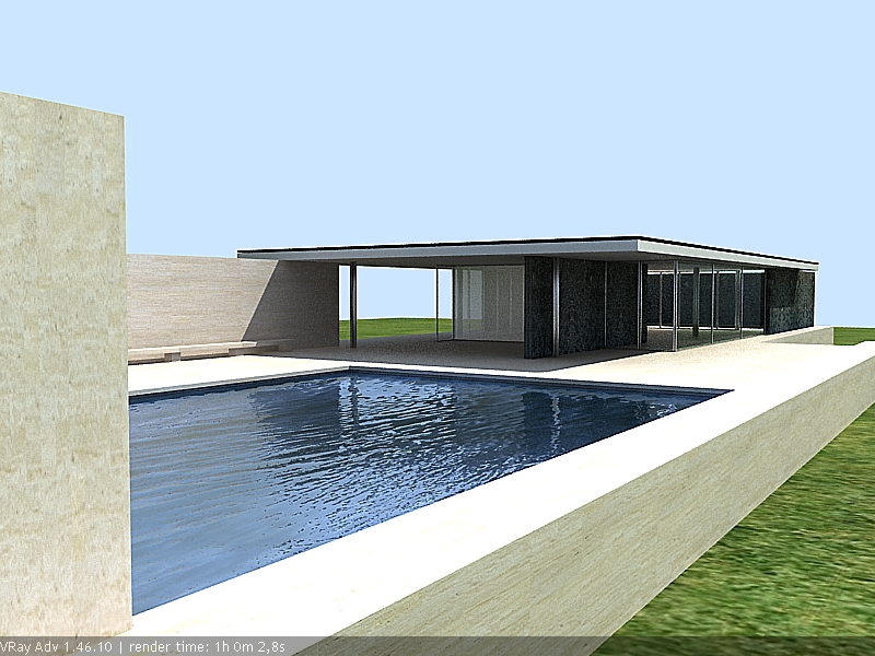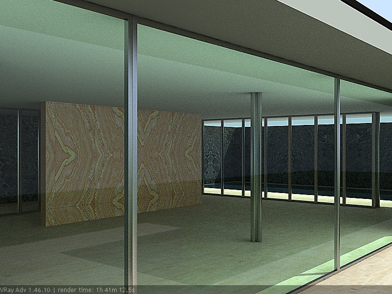 No, pero no sería muy mala idea que me hiciesen el trabajo y yo lo cobrase, este es el espacio de mies Ludwig Mies van der Rohe de Barcelona, así que, poco podría sacar, bueno aquí te pongo el render y algunas texturas, por si queréis echarlke un vistazo al pabellón la página del pabellón es www.miesbcn, com, un saludo IkerClon.