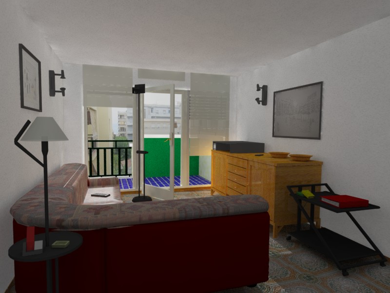 Buenas, tengo esta escena, y en un hilo que colgué mostrándolo en la sección de en proceso me dicen que parece que no hay cristal, bueno, la verdad es que no hay cristales en la puerta (las ventanas que dan a la terrasa).