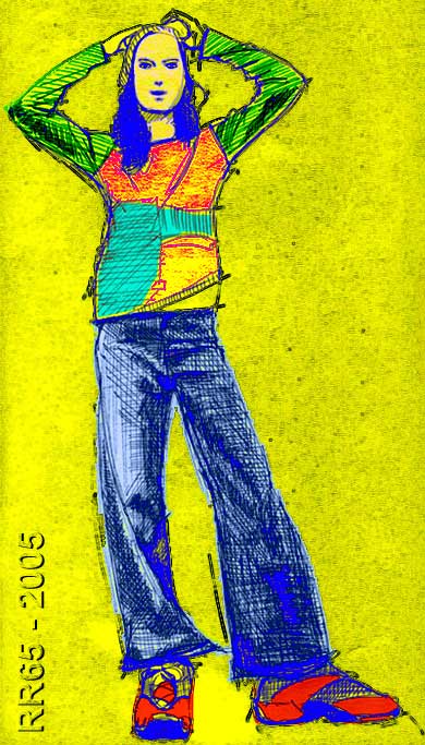 Vaya. Yo también quiero dibujar una mujer así. En cuanto al hombrecillo simpático de pantalones hasta el pecho, está muy original y me gusta también.
