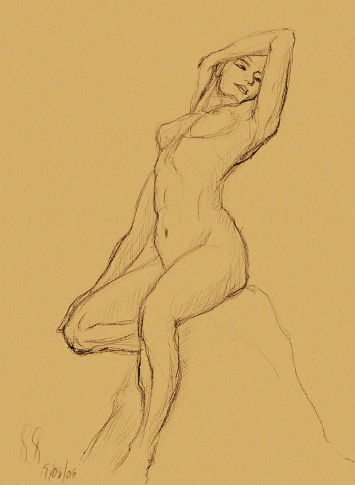 Vaya tío, muy bonito el boceto, me gusta mucho, ¿tiene los dedos entrelazados? Creo que te has pasado de largo con uno de ellos, pero ya te digo, muy bonito dibujo. Un saludo.