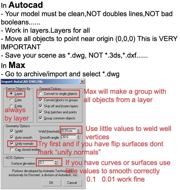 tengo bastante tiempo trabajando en AutoCAD y posteriormente en architectural desktop, cuando modelo en architectural (muros, losas, ventanas, etc) se ven hermosas las figuras dentro del render interno de architectural, al exportarlas a 3ds Max por más que modifique los atributos de importación se pierden las curvaturas perfectas de AutoCAD, la pregunta es esta es mejor exportar a 3ds Max o a el 3ds Viz de architecural? Incluyo una imagen, el plafón es de forma circular que van a enmarcar unas lámparas, pero al importarlas las faceta y parecen tuercas en lugar de cilindros.