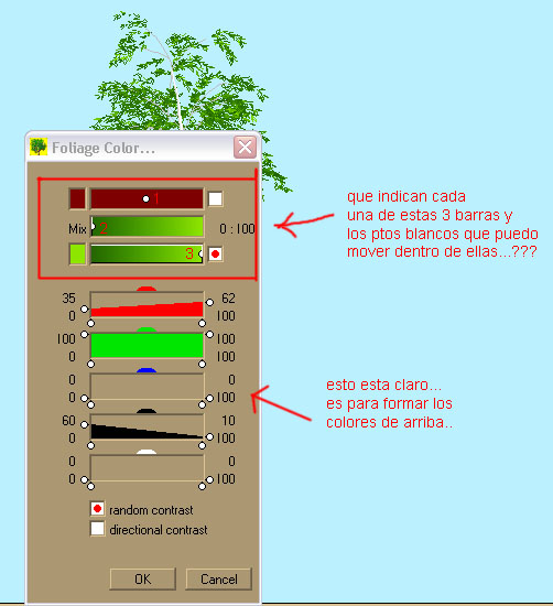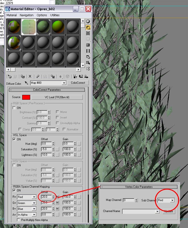 Un regalo Pit: Si no recuerdo mal, el Tree Storm te permite elegir entre tener un mapeado o tener color por vértice. Con el mapeado puedes tu hacerte tus mapas, pero tiene el inconveniente de la falta de variación en el color de la hojas que te ofrece el color por vértice ¿ok? Bueno pues hay un método para obtener lo mejor de los dos mundos: