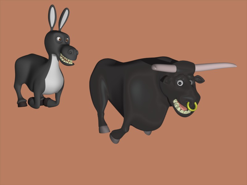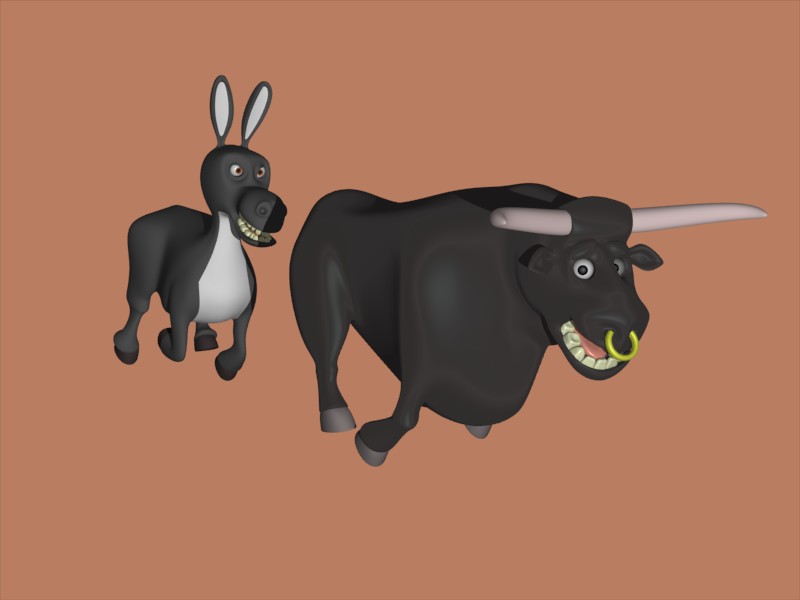 Bueno, aquí tienen la primera prueba de los dos en escena, estoy pensando de poner el burro encima de una piedra, así medio levantado. (como los cavallos alocados) con la cabeza hacia abajo, sé que le falta mucho a la escena y espero poder terminarla para mañana. Estoy aprendiendo muchísimo con este trabajo, gracias a todos.