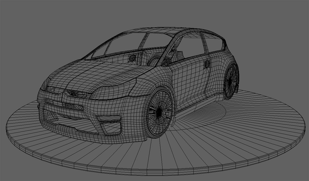 Después debes de entrar en modelar los pequeños detalles, como los inyectores de agua para el limpiaparabrisas, gomas que recorren las ventanas (las has puesto más o menos en los laterales, pero no en la frontal) los retrovisores son muy grandes, la maneta de la puerta la veo rara y el centro de las llantas pequeño, además de que me trabajaría el interior lo suficiente para poder hacer los cristales como son, transparentes.