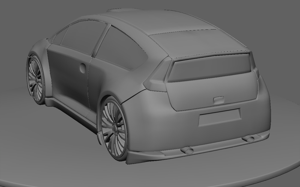 Vaya, 2 días sin tocar el coche. Pero ayer y hoy sí, un pequeño avance. Solo me faltan algunos detalles, revisar puntos flojos en la malla y a empezar a texturizar.