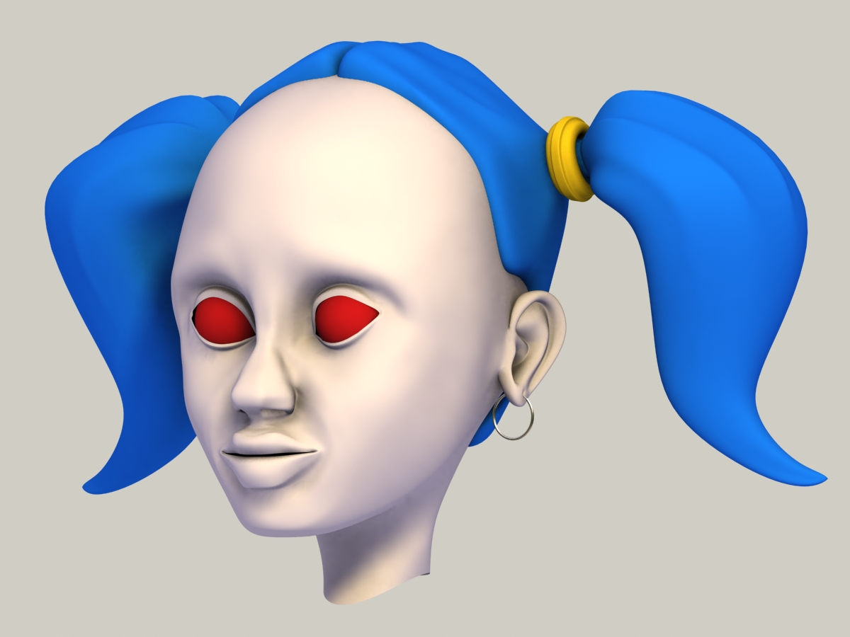Si es fea sí, y los ojos rojos se los puse a posta, me encanta putear un poco a los bichos que hago (experimentos sobre todo, ya que entero este es el primero que hago) pero vamos, falta retocar un poco la cara, le falta la parte delantera del pelo, que no tiene esa cacho frente. Y algunos retoques, tomo nota de vuestras indicaciones. Gracias.