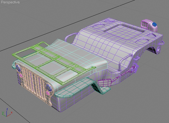 Aquí tenéis la malla. A ver qué os parece. Tiene algo más de detalle, como la garrafa trasera o las barras de las puertas.