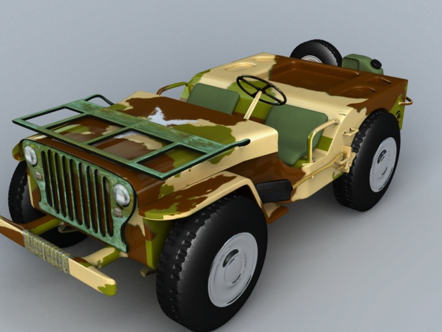 La verdad es que los detalles son casi inapreciables en los blueprints. Muchos te los tienes que inventar sobre la marcha. Como no sabía que jep era, no he buscado fotografías por internet, pero gracias por el consejo. En cuanto a las ruedas, lo mismo, al no verlas con detalle es difícil de modelar. De todas formas, es cierto que tengo que mejorarlas, y también reducir un poco el número de sus polígonos.