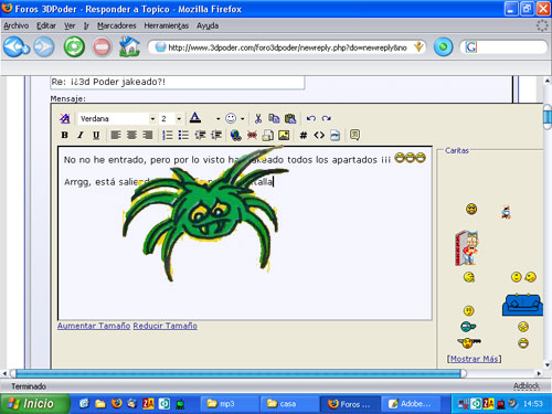 No he entrado, pero por lo visto han jakeado todos los apartados. Arrgg, esta saliendo una araña por la pantalla. Vaya, no que es el reflejo de un moño postizo de un familiar.