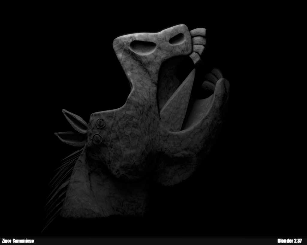Buenas Karras, me alegro de ver un paisano por aquí. El caballo no es exactamente del Guernica, es de un cuadro que hizo Picasso, no sé si antes o después del Guernica. La iluminación y el fondo las he dejado así por que creo que le dan más dramatismo al render. Ahora me está entrando el gusanillo de hacer el Guernica entero, pero será un trabajo muy largo. Me alegro de que os guste.