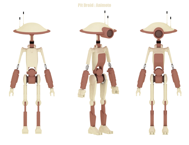 Hola, este es un Pit droid de Star Wars que hice este verano. Ya sé que le faltan las texturas, es mi tarea pendiente. Saludos.