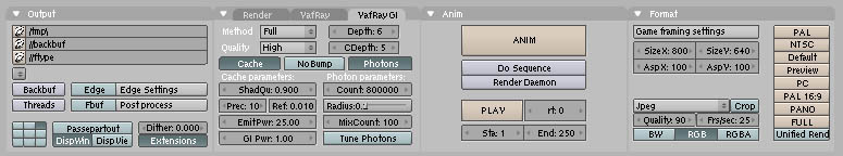 Tengo un AMD 1.7 con media Gb de RAM. Cuando no refino las sombras la escena tarda poco más de 40 minutos, pero queda muy sucia. Voy a colgar los settings. Gracias por los elogios a todos.