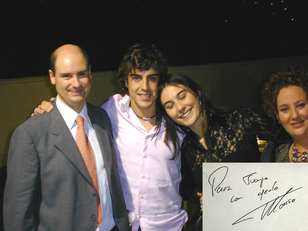 Por cierto, os voy a dar un poco de envidia este soy yo con Fernando y una amiga en la nochevieja de este año pasado, y el autógrafo que me firmo unas semanas después gracias a un amigo común, pura hola que coincidimos en la misma fiesta y la verdad que el tío muy enrollado se hizo fotografías con todo el mundo, eso sí, es verdad, no tomo otra cosa que zumos toda la noche, el alcohol ni lo prueba. .