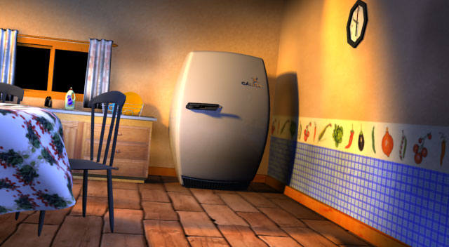 Esta curiosa la animación, lo que no me gusta demasiado es que cuando abre la nevera no parece que la mano sujete con fuerza la manilla de la puerta y cuando se le ve de cuerpo entero quedaría mejor una cara más asustada, parece más bien aburrido.