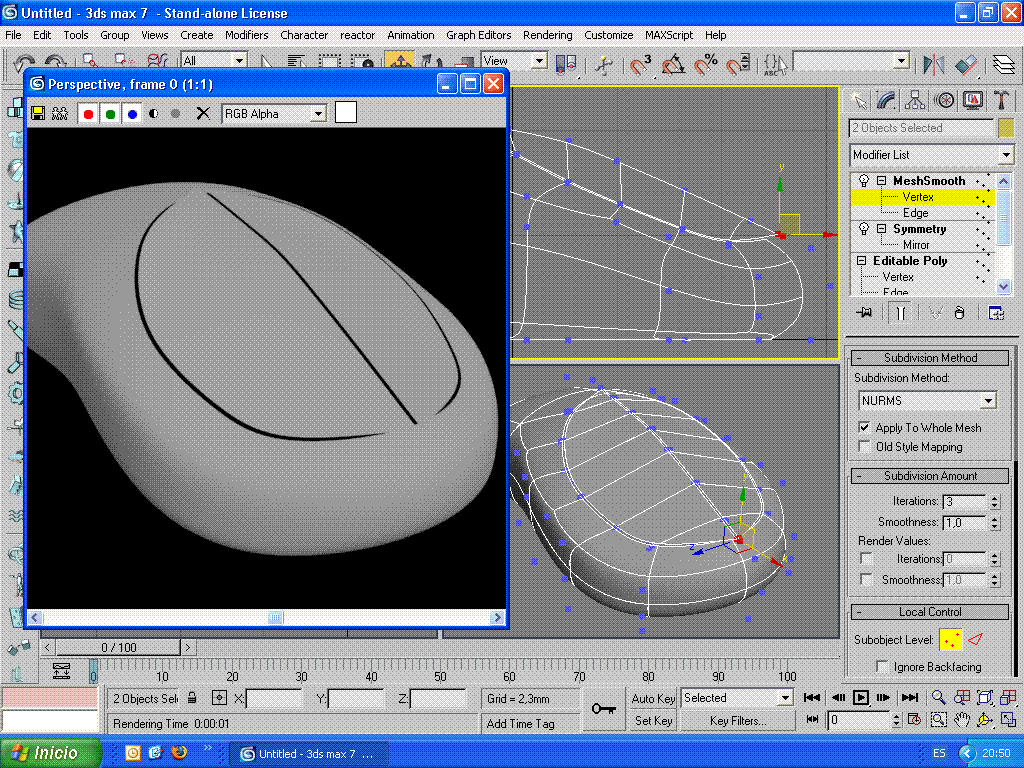 Hola a todos, estoy intentando hacer un ratón de ordenador, pero a la hora de hacer los botones me quedo colgado, lo que he hecho hasta ahora ha sido una caja le he aplicado un Symmetry y he ido modelando y al final le pongo un MeshSmooth y surge el problema, por más pruebas que hago, os dejo una imagen para que me ayudéis. Gracias.