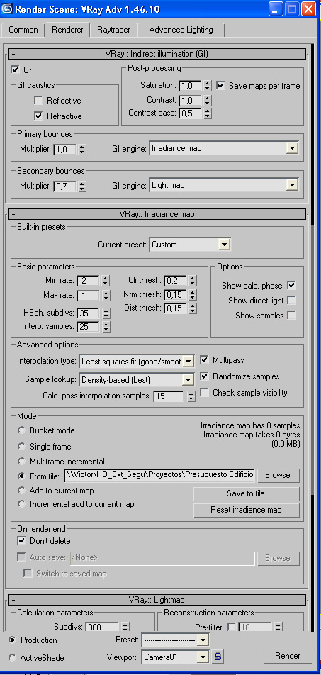 Elegí este sistema de render (lighmap e Irradiance Map) porque con render normal todo se me llenaba de artefactos y me tenía loco.