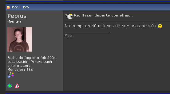 Memiras, me desconcentras que si la miro la desconcentro. Pues que.