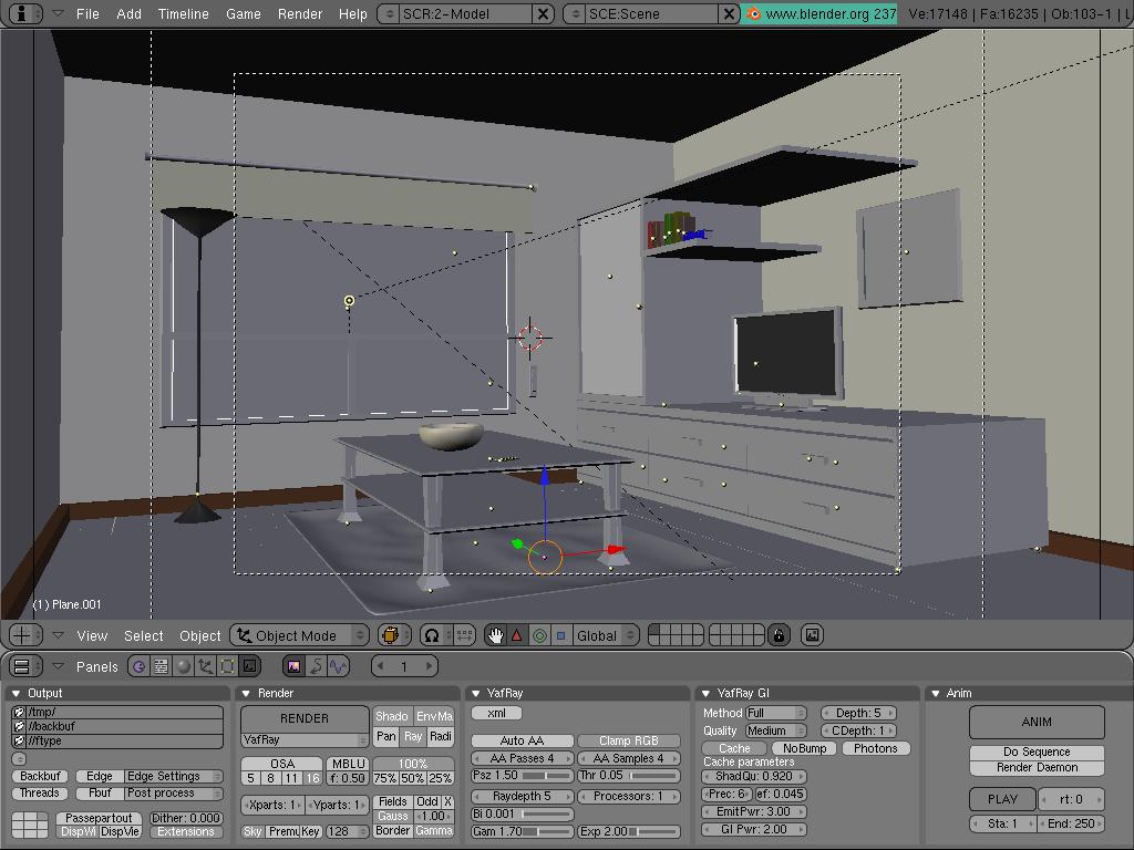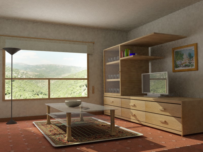 Buenas, he estado haciendo este interior con Blender y Yafray y no entiendo por qué me quedan manchas negras en la pared.