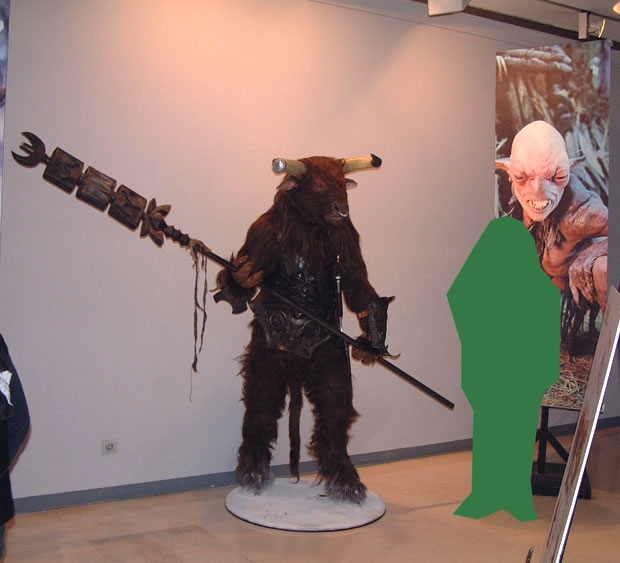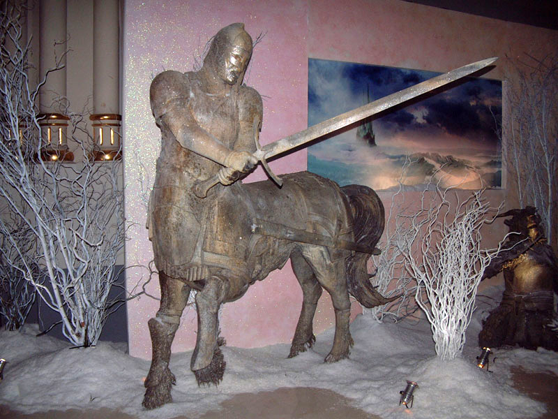 También había varias figuras a escala 1/7 más o menos, de varias de las criaturas de la película, figuras a tamaño natural (espectacular el centauro), y algunos trajes y máscaras de látex usadas en el rodaje (el mejor es el traje de minotauro de cuerpo entero que había a la entrada).