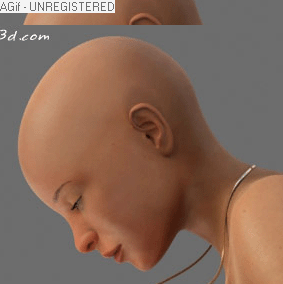 El pelo está hecho con el nuevo sistema incorporado del 3dsMax 8 (que diría que es el and a Haircut en otros software, no sé si alguien lo puede confirmar esto, o si me lo estoy inventando). El sistema no es difícil, pero si muy, muy pesado (he de decir que TPC he quedado contento con este software, siempre dan un montón de problemas todos los plugins de pelo que he probado, tanto de estabilidad como de facilidad de creación). En fin, lo que hago es trabajar por partes (muchas, para que quede bien), con lo que duplico la malla de la cabeza, me cargo todas las caras excepto con las que voy a trabajar (poniéndolas en no renderizables), y le marco la dirección y la longitud del pelo aproximadamente, con un par o 3 de Splines. Luego ya es cuestión de usar la herramienta de style para acabar de peinar como quieres, pero teniendo en cuenta que tú pondrás las guías de una manera, y luego el pelo saldrá como le de la gana. Bueno, tampoco es tan exagerado, pero, en fin, que cuesta un huevo que te quede cómo quieres. Y básicamente, e s ir haciendo esto en muchas zonas (configurando el material y añadiendo un poco de random con los parámetros, pero, en fin, no tiene demasiado más).