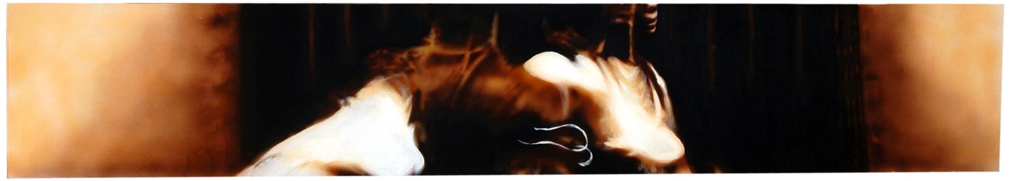 Ya sé que estamos en un foro de animación y 3d y esas cosas, pero a mí también me alegra saber que todavía existe gente que se atreve con el aerógrafo. Llevo mucho tiempo pintando con aerógrafo y sé lo complicado que es. Y llevado por esta emoción, yo también quiero colaborar con uno de mis trabajos. No es un mural, pero sí un cuadro bastante grande (230 por 55 cm)