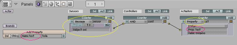 Ahora vamos a logic (f4) y pulsaremos el botón ad property. Cambiaremos el nombre de la property pulsando en prop y escribiremos text y nos saldrá en la pantalla 0.000000. Debería ser algo como esto: