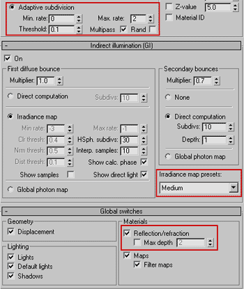 Si la imagen tiene muchos efectos ruidosos, como áreas grandes con reflexiones brillantes, simple two-level a sería más rápido que adaptive subdivisiones.
