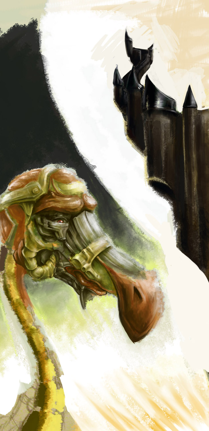 Hola, estoy haciendo este concept, es un pájaro de la era postnuclear. De momento, debería ser una mezcla entre pavo, dragón e imaginería personal, pongo las dos primeras cosas que he hecho. Un boceto rápido y una pintura en progreso basada en ese boceto.