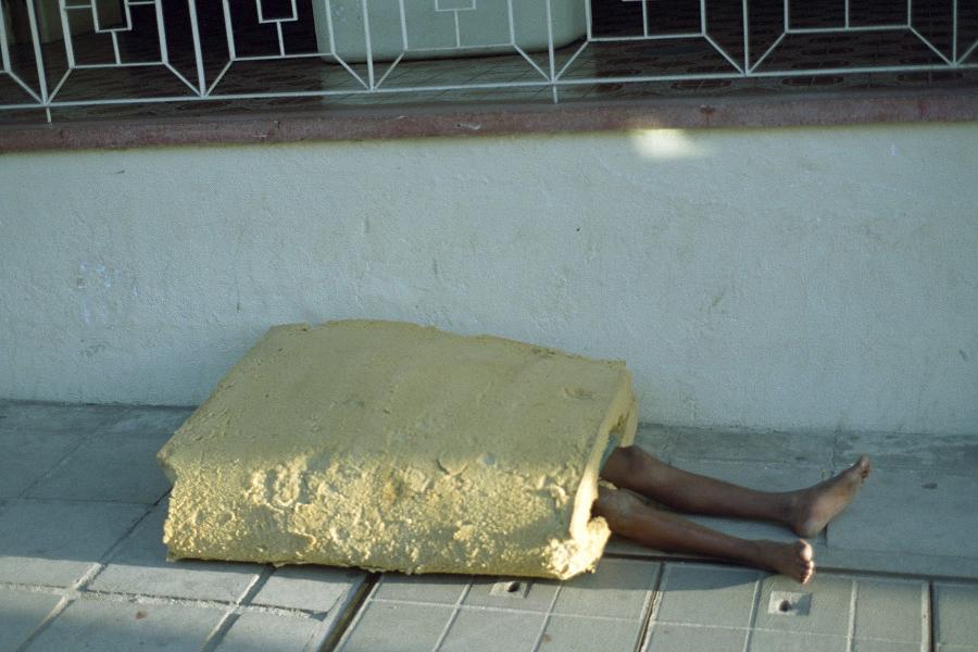 Es un niño de la calle, de santo domingo, en república dominicana. Acostumbran drogarse oliendo cemento de zapatero. O cemento de contacto, lo cual le quema las neuronas del cerebro.