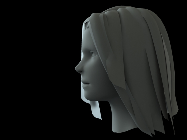 Está muy bien. Lo que Dfex te ha dicho de la nariz es algo que deberías cambiar. La idea del pelo me gusta, pero está un poco raro, aunque lo texturices creo que quedará un poco extraño. Para que se pareciese más a una mujer yo le haría la boca más pequeña, y el labio inferior un poco más grande. En general, en la boca se tiene que notar el labio superior más largo que el inferior. La barbilla también se la haría menos redondeada, pero eso es lo de menos. Sigue así que, está muy bien.