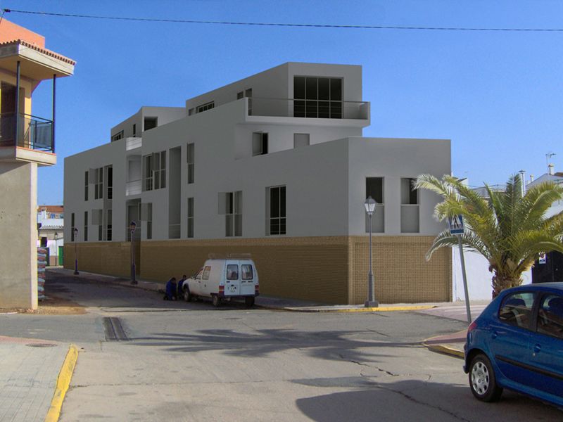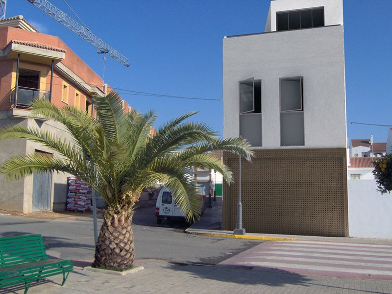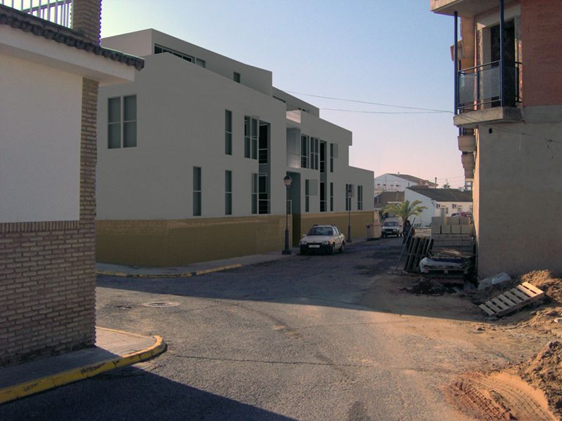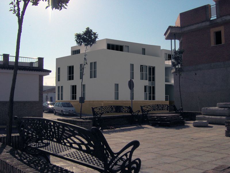 La integración y el modelado están bastante bien, pero le veo algunas pegas: Si es para un concurso yo habría borrado la obra, la que se ve por la calle, los paletas que están trabajando, etc. Otra pega gorda es la hora a la que están hechas las fotografías, porque el edificio esta a la sombra y no se marcan bien los volúmenes.