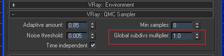 Con la versión de Vray con la que trabajo, ese valor de global subdivisiones multiplier no existe. En cualquier caso, si conocieras la teoría verías cómo reducir el valor de hsph subdivisiones tiene un impacto directo sobre la calidad de la solución GI.