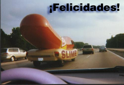 Muchas felicidades. Me voy a comer una salchicha a tu salud (uy, que mal suena eso.