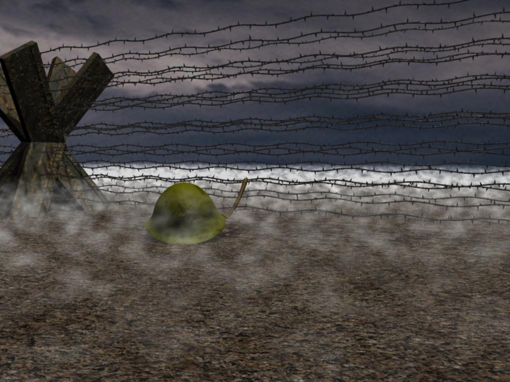 Los alambres de espino se quedan muy ordenados, algo más de aleatoriedad les iría bien. El casco es muy sencillo y poco trabajado. Desconchones, alguna malla de esas de camuflaje no sé, algo más.