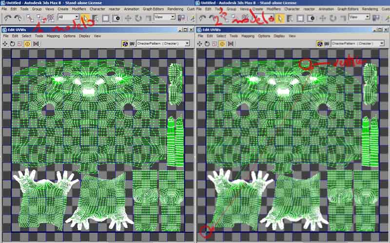 6. Rotate and press deleete a few times todo chek that the polys are near the main model in 3d space. If the view zooms out as before with model on one Edge of the frame- Repeat previous steps.
