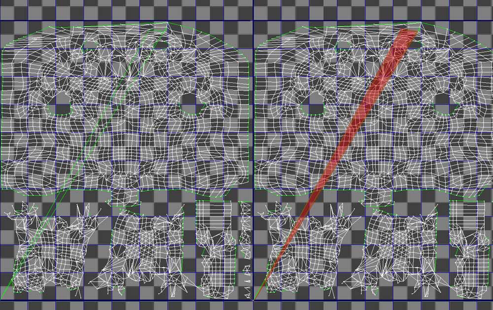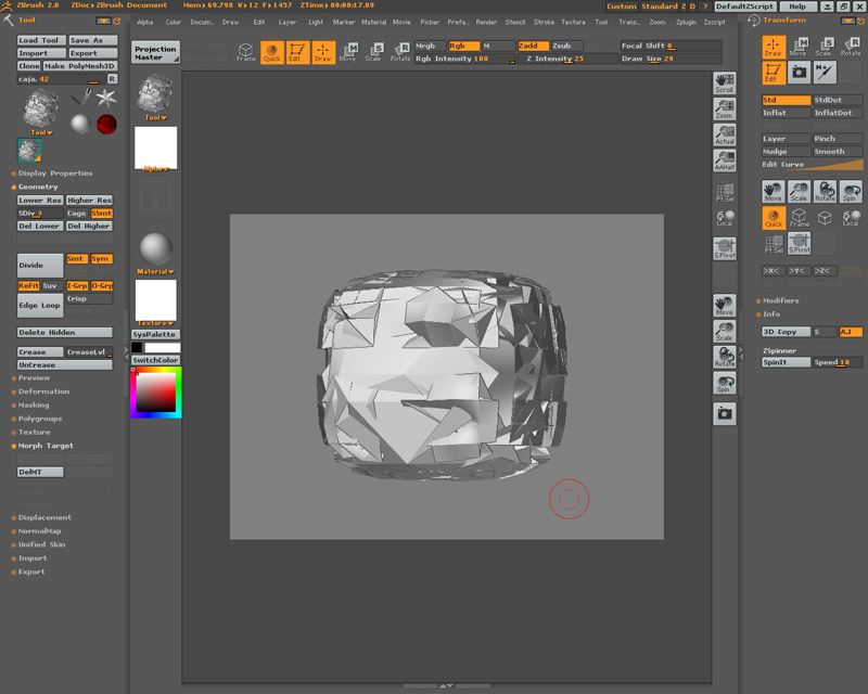 7. Select Smooth tool max out the size and strength and Smooth over the whole frame. This Will only move the polys bak todo their home, everything else should still be masked of.
