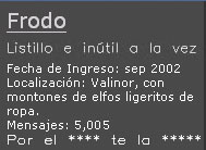 Sigue con tu ritmo, amigo Frodo, siempre es un placer leer esas paridas.