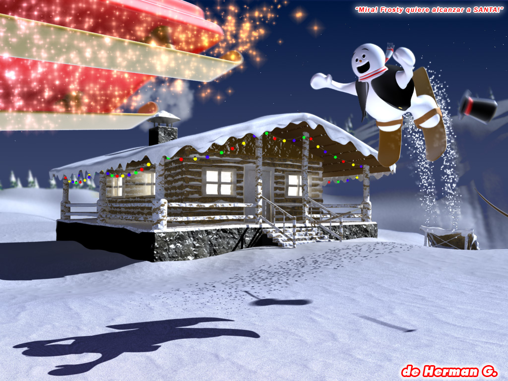 Mira. Frosty quiere alcanzar a santa. es mi regalo que hice a mi novia. Y también quiero compartirlo con ustedes. Aún que no es mucho, cada año le regalo algo más elaborado que el anterior (es la idea de avanzar o ¿no?)
