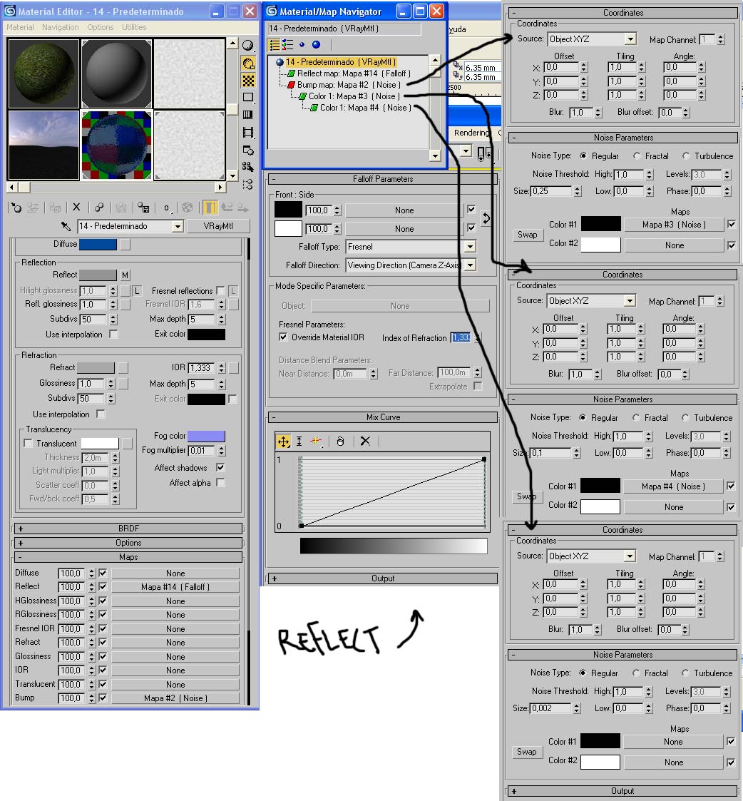 Vaya, uso la versión 8 de 3ds Max. No te preocupes, que en un rato te preparo las capturas del material para que lo puedas hacer.