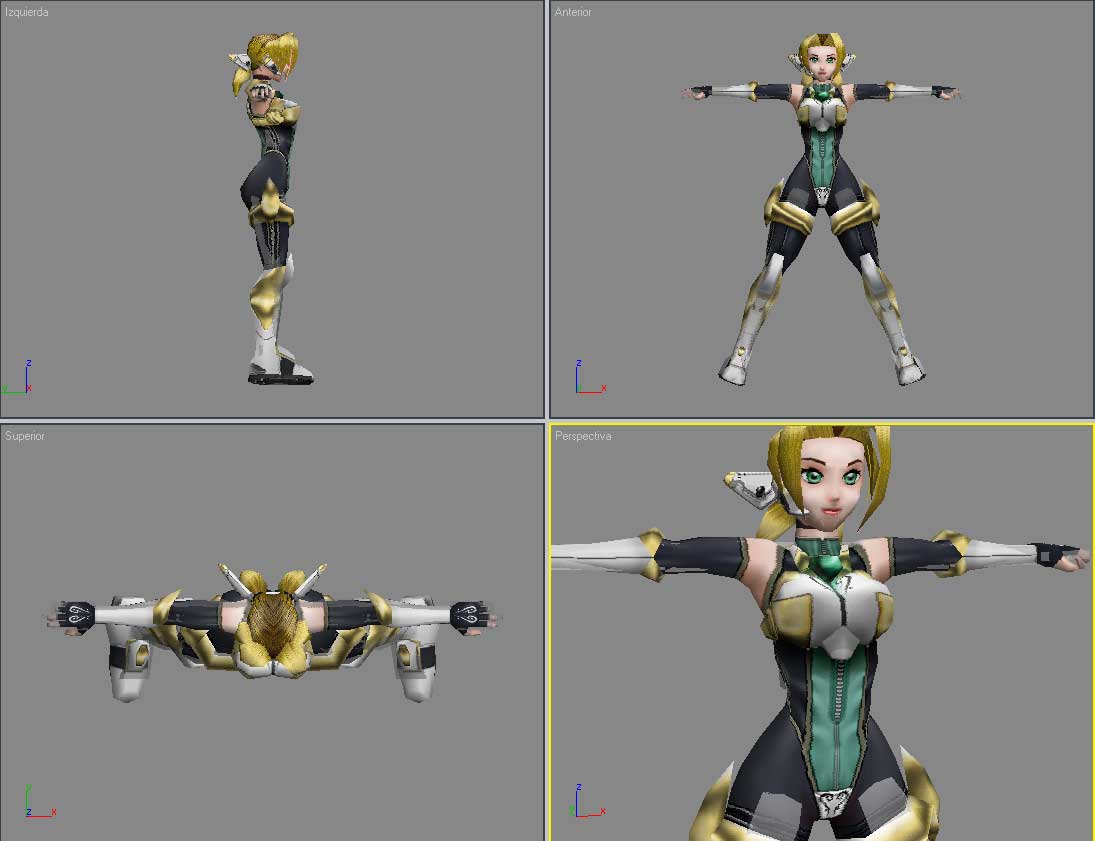 Pues me gustaría mucho que fuera para un videojuego, pero mucho. Como dije en 3dyanimación.Ahí abajo el modelo camina (cargué un archivo.bip, aún soy un negado para la animación).La finalidad del modelo es que ese personaje se de a conocer y se haga famoso, que me contraten por lo bueno que es para hacer un juego con ella como protagonista y su fama crezca tanto como mi bolsillo. Otro objetivo es desbancar a Lara Croft y a los Final Fantasy a la vez (atacando por dos frentes,) y que a los dibujantes de este mundo les den ganas de dibujar doujinshis hentai basados en el juego que mi personaje protagonice, superando en material hentai a morrigan y a tifa juntas. Y quién sabe, a lo mejor le dejo a la Fox que hagan una película de ella. Y luego hacer la segunda parte del juego más grande más largo y con más opciones, y puede que una segunda película.