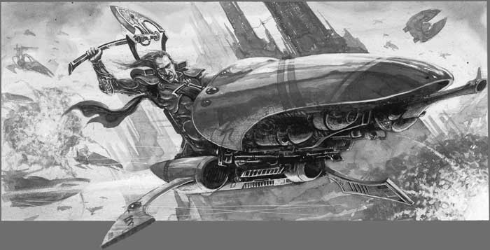 Bueno pues aquí va mi moto futurista, no es diseño mío, es de Warhammer 40.000, de la raza Eldar, bueno va que es una moto gravitatoria.