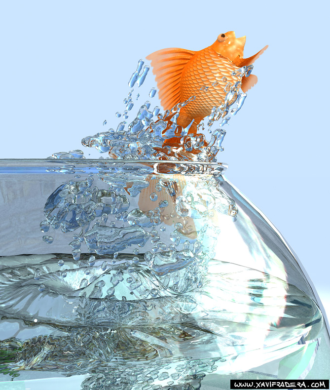 El render llegó a tardar unas 10 horas por culpa de la complejidad, aunque no lo parezca, de la textura del pez.