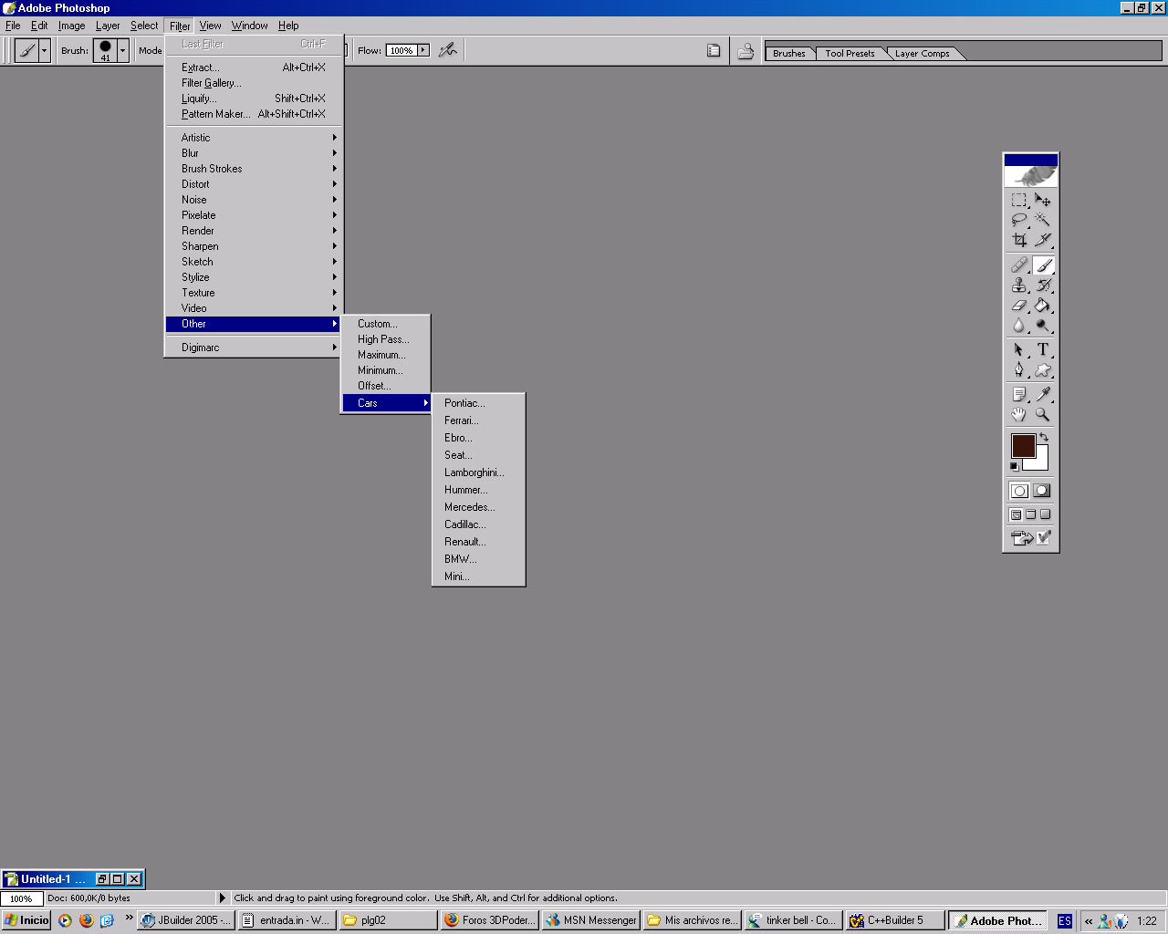 En que parte del Adobe Photoshop SC sale ese filtro. Por que yo desplego la ventana de filtro y no veo ningún filtro crear coche o algo así.