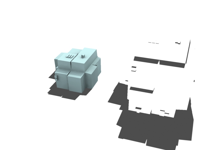1. Pon una luz principal de tipo direccional para producir sombras paralelas, renderizalo, ajusta los cambios que sean precisos.