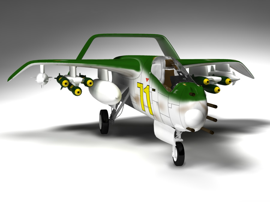 Hola como están. Este es el primer avión que hago en 3d, está basado en un boceto que hice hace un par de años para un avión de combate de ataque al suelo y antitanque (bueno algo así).