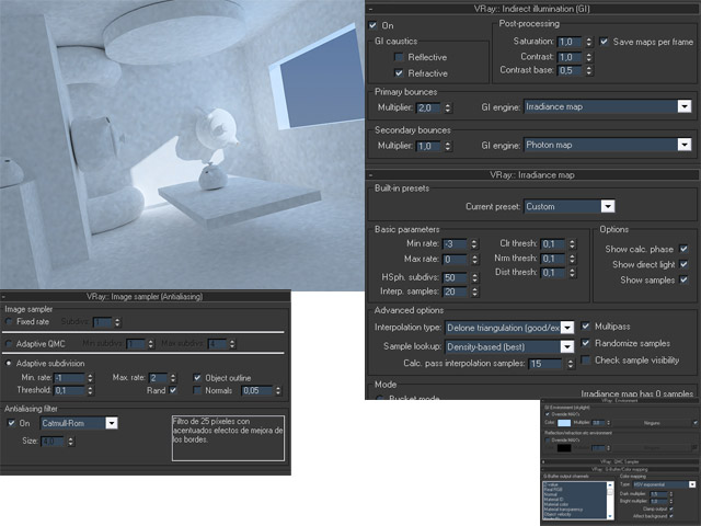Hola a todos, me gustaría saber cómo configuro mi render para que esa escena me salga con una calidad lo suficientemente buena para que no se vea artefactos y líneas de sierra sin estar más de 3 horas renderizando la imagen.
