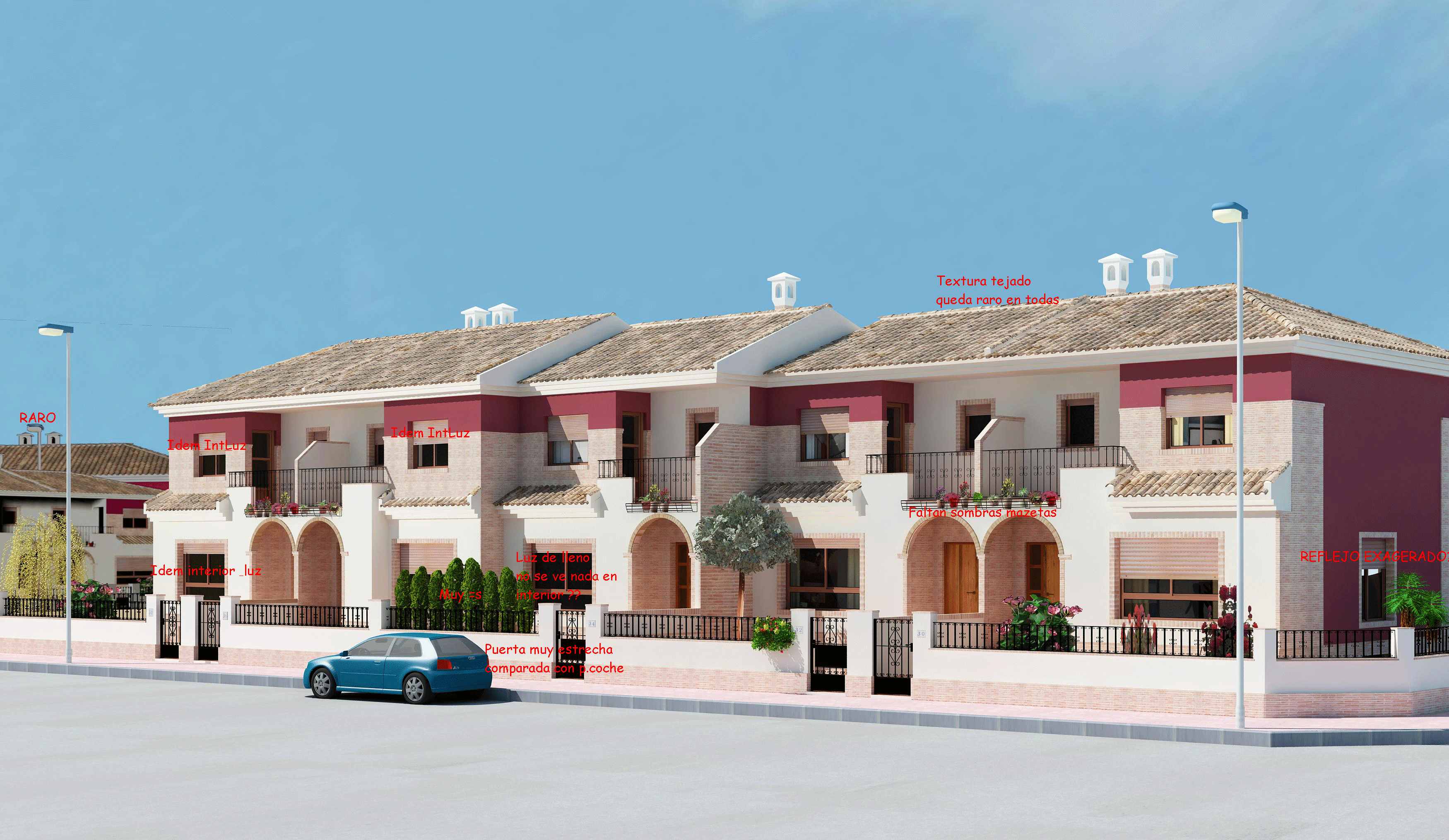 El material de las tejas están muy bien, pero diría que son añadidas en mensaje porque no proyectan sombras resultando un poco falsas.